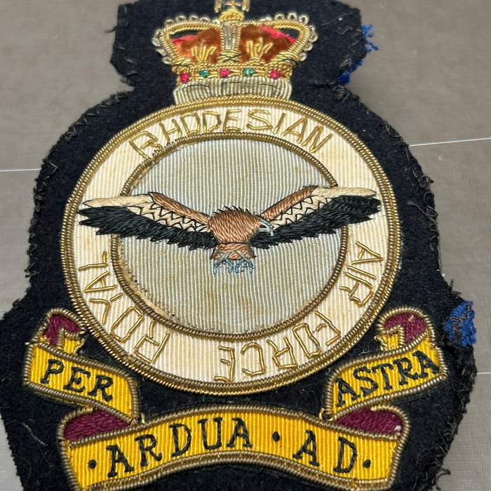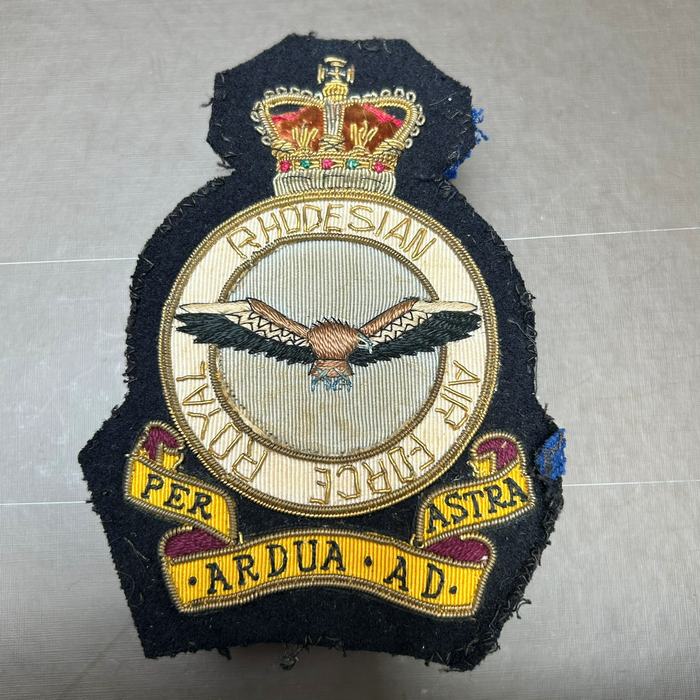 Royal Rhodesian Air Force RRAF Blazer Badge 1953 – 1970 Material: cloth nice embroidered Size: approx. 130 X 95 mm !! Reverse: see photo Fine original condition Rare item